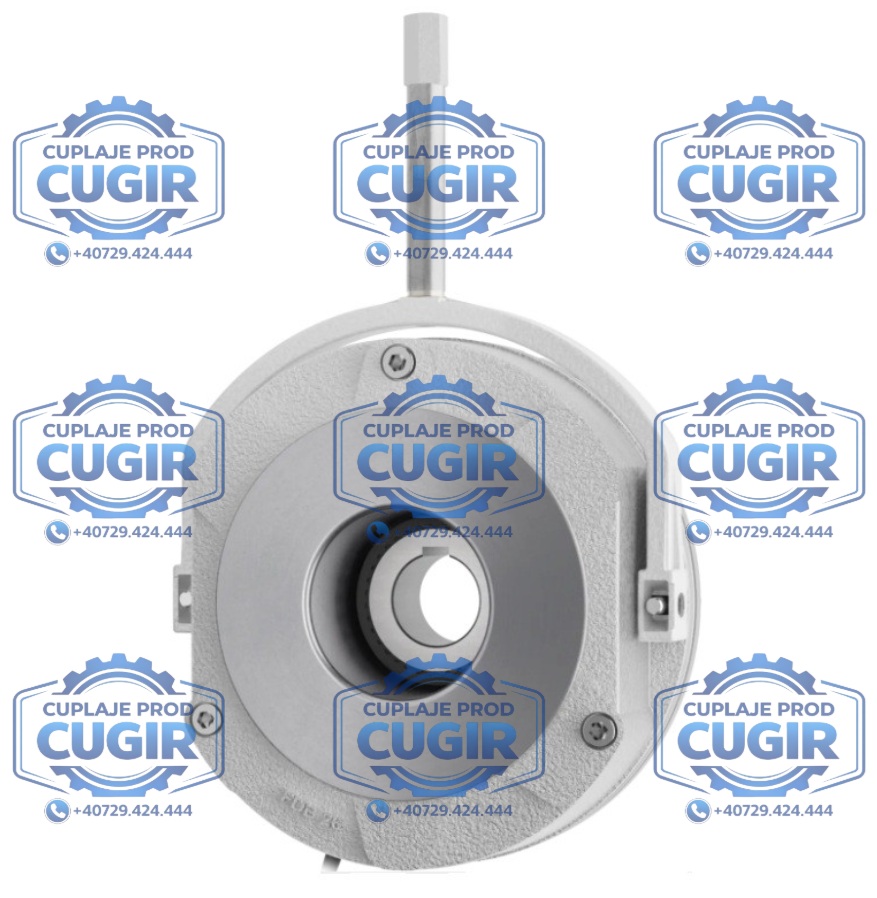 Construcția este compactă și robustă, fiind formată din carcasa bobinei electromagnetice, placa ancoră, discul de fricțiune și butucul de montaj pe arbore. Atunci când tensiunea este aplicată, electromagnetul atrage placa ancoră și frâna se eliberează, permițând rotația arborelui. Sistemul permite reglarea jocului de aer și compensarea uzurii discului, asigurând funcționare fiabilă și durată mare de exploatare.